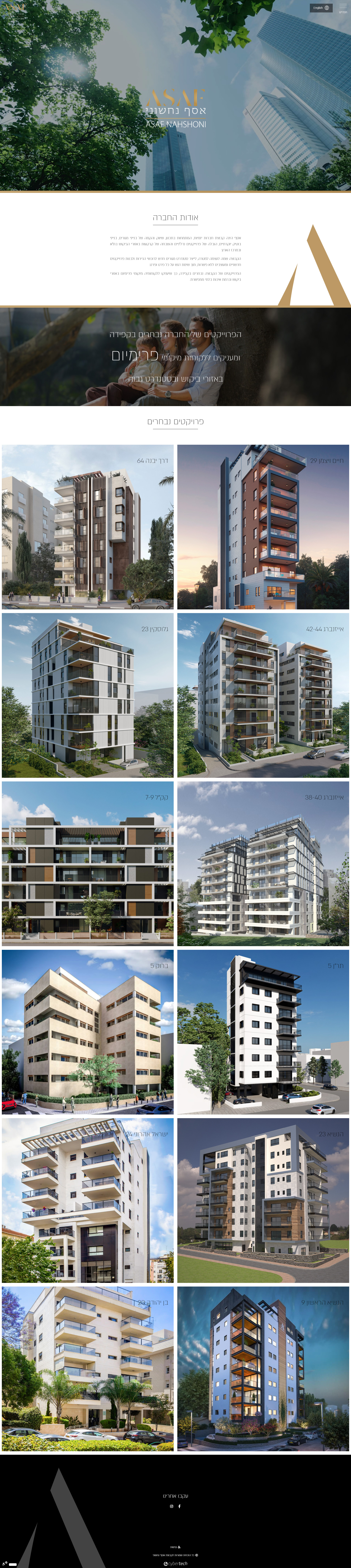 עיצוב והקמת אתר עבור קבוצת אסף נחשוני, השמה לעצמה למטרה, לייצר סטנדרט מגורים חדש לרוכשי הדירות ולבנות פרוייקטים חדשניים ומעוצבים ללא פשרות, תוך שימת דגש על כל פרט ופרט.